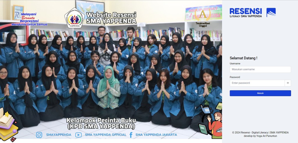 Resensi Digital ini merupakan sebuah inovasi yang diprakarsai oleh perpustakaan SMA YAPPENDA, yang bertujuan untuk meningkatkan minat dan kemampuan literasi Baca - Tulis siswa/i SMA YAPPENDA.
